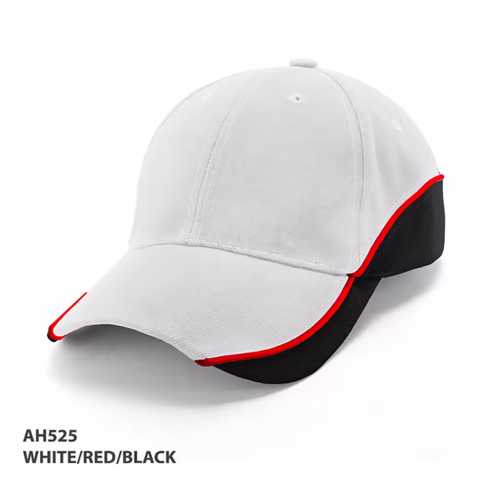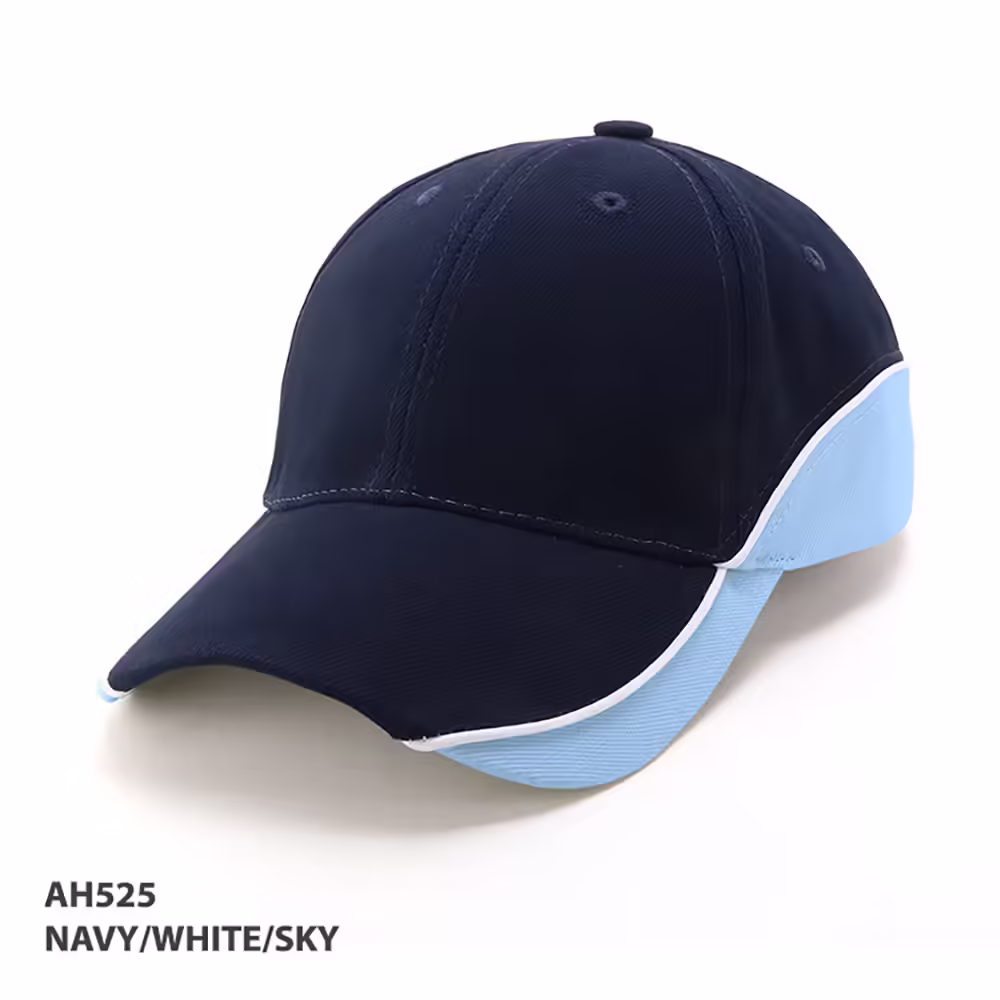 The AH525 cap features a sleek 2-tone design with piping, offering a modern and sporty look suitable for casual wear or promotional events.