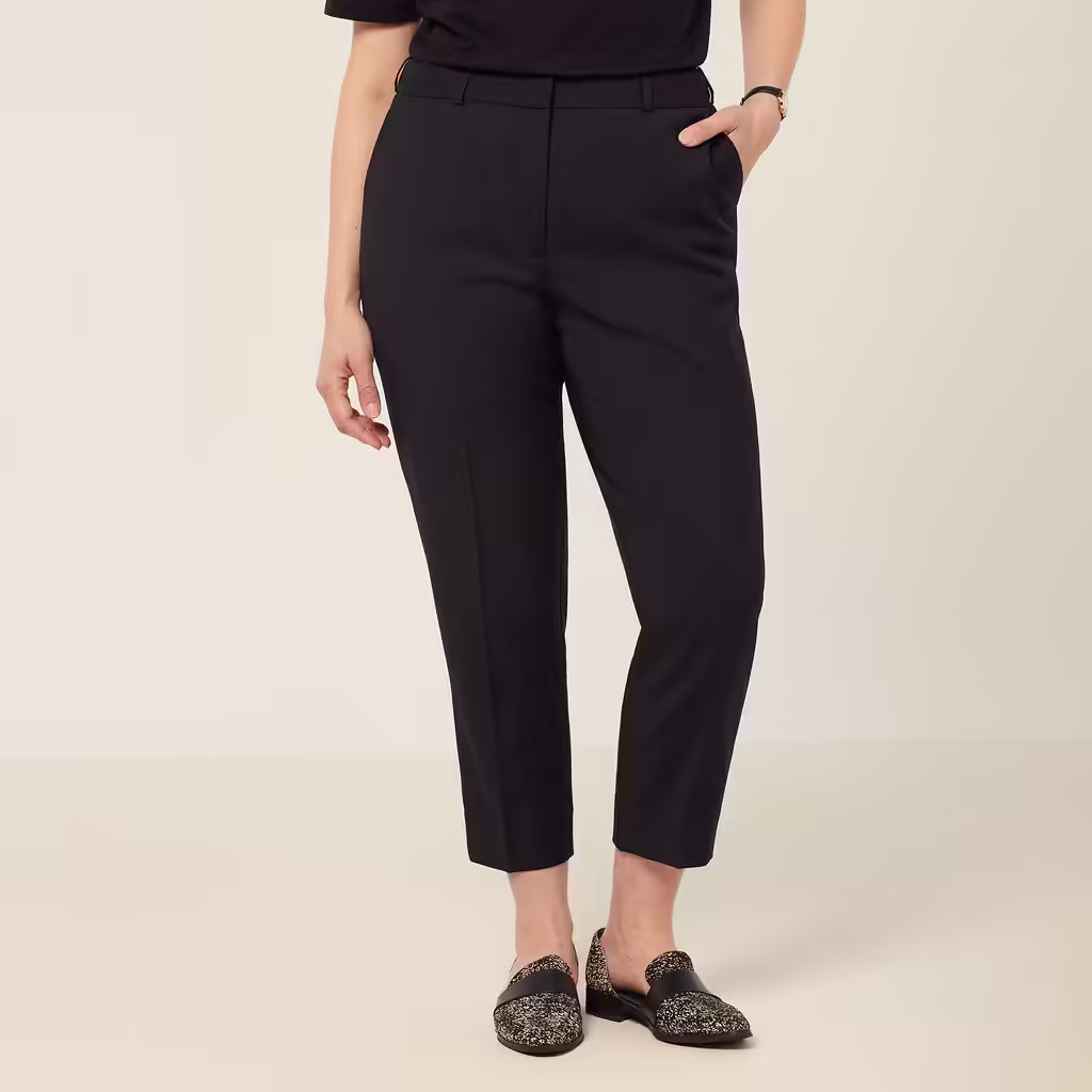 Crafted from a luxurious wool-blend twill, these slim-leg pants feature a flattering 7/8 length, making them a versatile wardrobe staple. The secret stretch waistband offers an extra layer of comfort and flexibility, while the hook-and-eye closure at the centre front ensures a sleek, secure fit.